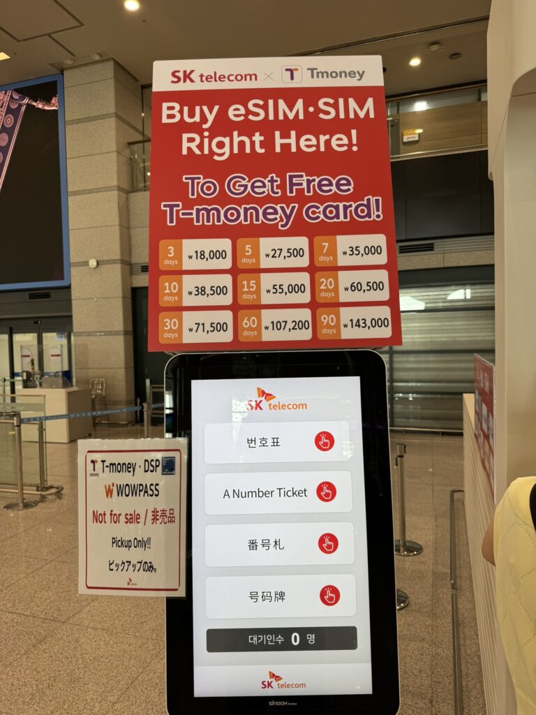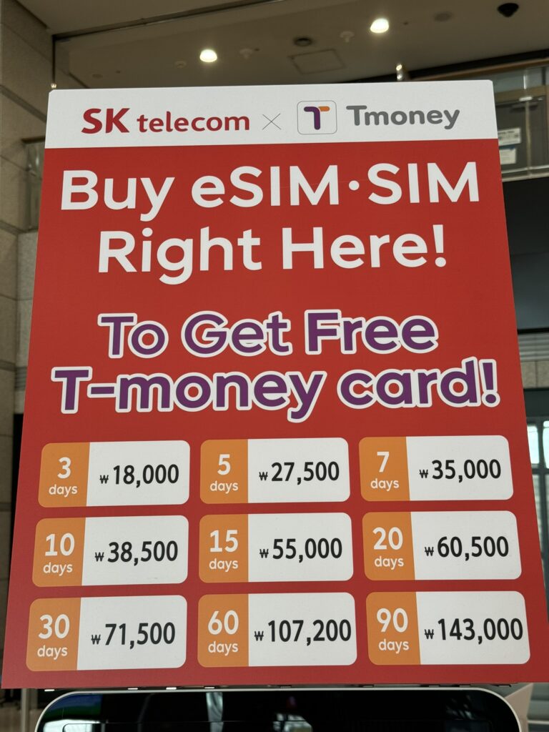 Als Bonus kann man auch eine T-Money karte kostenlos bekommen.